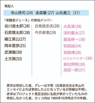 最早报道ジャズ映画実験室的报纸是内外タイムス(内外Times,1949年6月1日创刊,2009年11月30日废刊),这份报纸的记者斎藤龍鳳曾在报中大力介绍过尚是新人的大島渚导演,虽然他因为忙于电影「太陽の墓場」、「日本の夜と霧」(「太阳的墓场」、「日本的夜与雾」)而没有参与,但仍旧被列为成员之一。