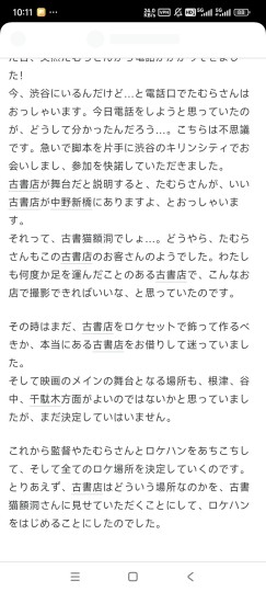 电影中出现的古书猫额洞,为东京一家古书店,位于中野地区,铃木卓尔常去那里撸猫。确定摄影师田村正毅时,刚好对方推荐去那里拍摄,于是一拍即合,一起愉快玩耍。