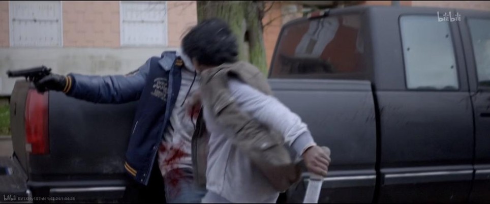 年轻雇主的帮派,被其他黑帮上门在社区枪战。女主潜意识护着对枪声应激的女孩回到了家。透过窗,看到年轻雇主指挥小弟追击,女主意识中安稳的生活崩塌了,不安感让她再次逃离。