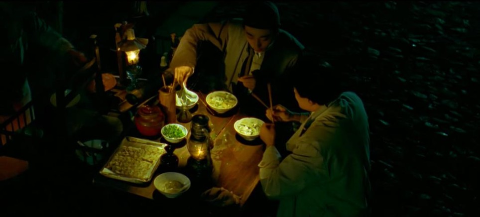 徐先生请客烟具店伙计吃路边摊这段戏,两盏油灯细节到位, 在布光上非常克制。