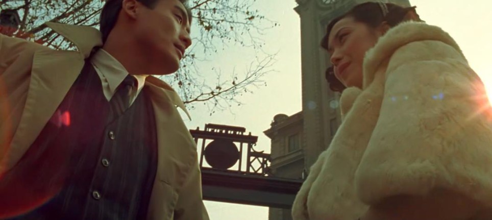 3.外滩外景和内景外滩和苏州河都是上海的母亲河,也是最能体现上海城市的地标点。在做电影里的上海栏目时我们统计过,拍摄上海的电影尤其是年代剧里,外滩出现的镜头是最多的,其次是苏州河。比如张艺谋的《摇啊摇,摇到外婆桥》(1995),李安的《色戒》(2007),娄烨的《兰心大戏院》(2019)。要是拍老上海电影里没有外滩和苏州河便觉得差点意思。外滩沿黄浦江立面的西洋老建筑从上世纪30年代起至今基本都没太变化,从90年代起,外滩立面背后逐渐树立起了不少高楼大厦,不少电影都有些穿帮镜头,但只要特意寻找角度拍摄局部或建筑细节还是能完美避开的。《人约黄昏》里外滩、苏州河都有,而且还有外滩老建筑里的内景,堪称优秀!