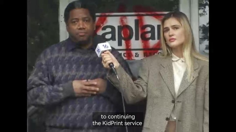 在开播前我就已经瞄到数十条电影节影评一同赞赏这个片段的黑暗之处,虽然已经被剧透到了凶手并不是一水的超自然实体而是杀手。和去年的V/H/S/85一样,Carl Garrison是第一个被官宣成为致命录像带的演员也是凶手,这个故事非常黑暗我喜欢。 众所周知80年代最热门的《月光光心慌慌》《13号星期五》给那个年代的人们带来了一个血浆遍地的杀手年代,各家各户就如同本篇故事kidprint里,一个小镇上儿童接连不断神秘失踪案件一样搞得人心惶惶。 老板Tim Kaplan所在的卡普兰电器,在万圣节到来之际在给镇上的儿童录制影像,由于最近的儿童失踪事件越来越频繁。以免当孩子失踪时无证照无来源无线索。但很快这些好意录制的影像将成为整个黑暗事件的中心。